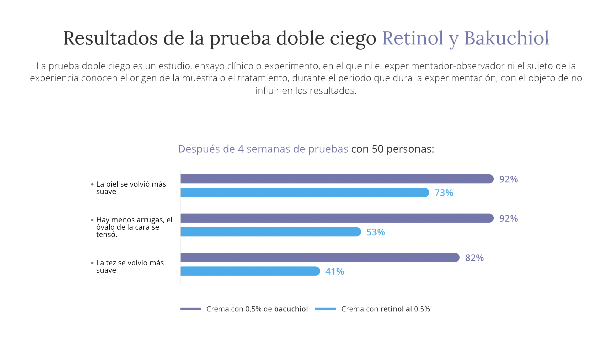 Una vez que se encuentra en las células de la piel, el Bakuchiol activa las vías químicas responsables de la generación de colágeno y reduce el riesgo de cambios tempranos en la piel relacionados con el envejecimiento.