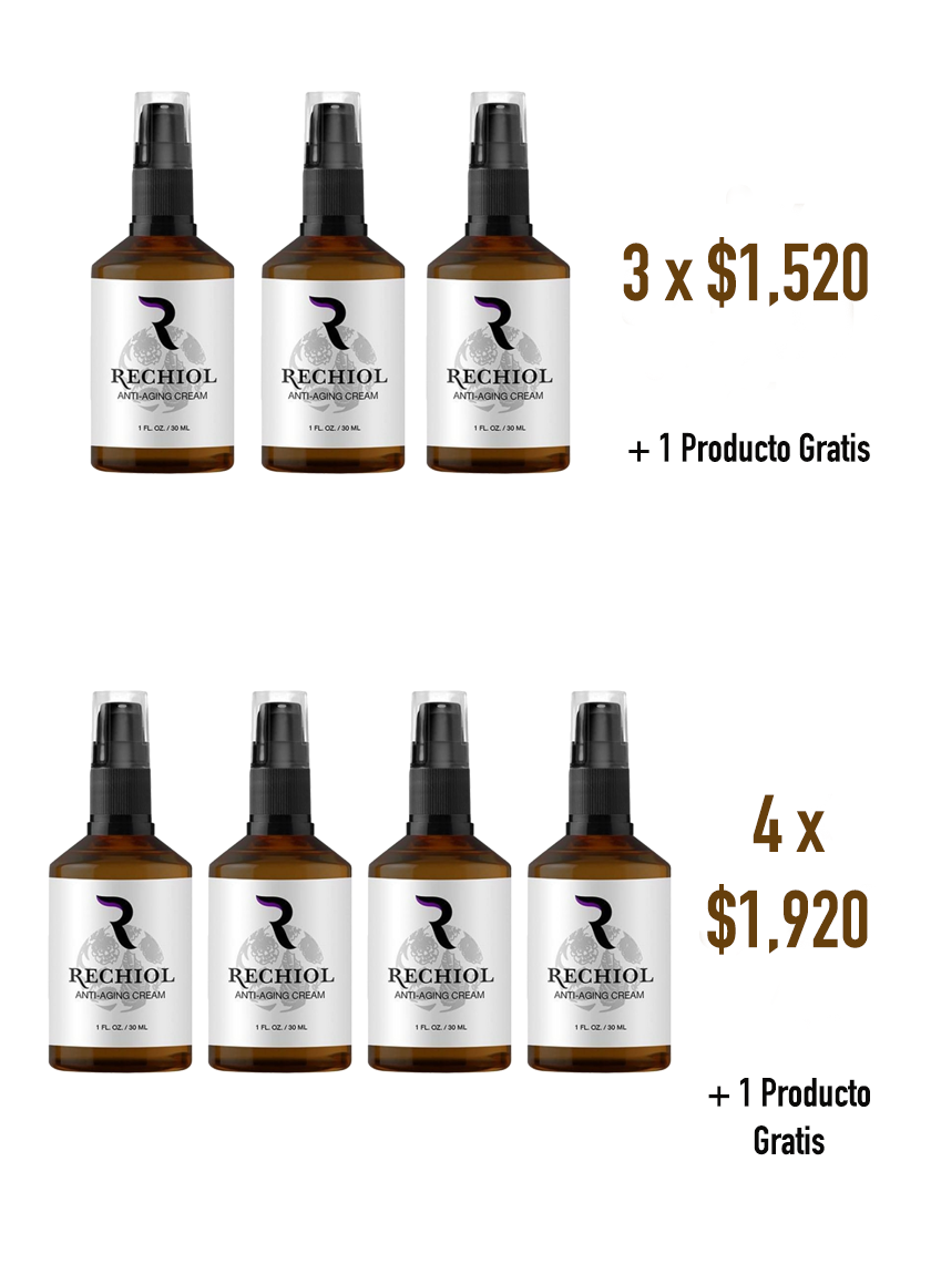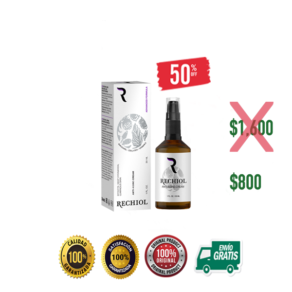 Rechiol mantiene tu edad en secreto. ¡Tu oportunidad para mantener tu piel joven durante muchos años! Contiene activos anti-envejecimiento que renuevan la epidermis y estimulan la producción de colágeno y elastina, aumentando la elasticidad de la piel.